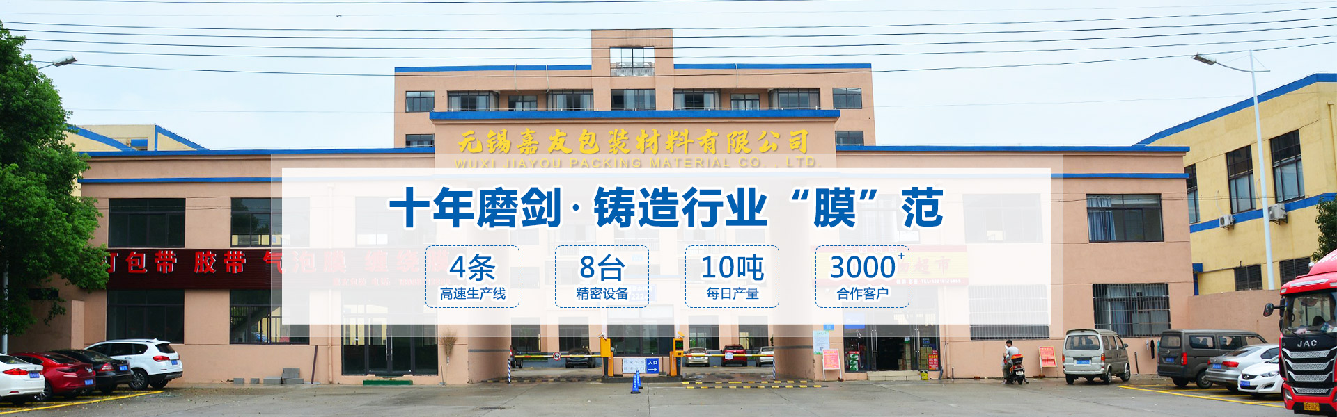 無錫嘉友包裝材料有限公司是一家綜合性的新型包裝材料生產商。我司專注生產纏繞膜,氣墊膜,珍珠棉,打包帶,和膠帶等塑料制品包裝材料產品,并為客戶提供一體化解決方案。